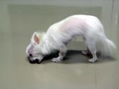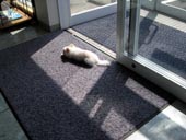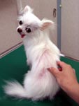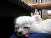 あげはの一日・・・。 〈病院での一日編〉 2004年 7月23日(金) ☆朝☆ バスに乗り一緒に出勤です。 今日は、お昼の一番暑い時間の出勤のため、バスも冷房にはなっているものの・・・ あげははとても暑かったようです・・・。 あまり暑くても舌を出してハァハァとしないあげはがこんなに暑そうにハァハァするのはとても珍しいことです!! ![]() (かなり怖い顔になってます・・・) 仰いであげていると、 気持ちよさそうな顔になりました。 |