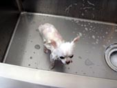 ブラッシングをしていると、左側の背中全体にポチポチと赤く湿疹がたくさんあったので、身体だけ、シャンプーしました。(20日に全身シャンプーしたのに、そのときのシャンプーがあわなかったのかな?) ![]() 『えぇ!何? またシャンプーするの??』と驚き顔のあげは シャンプーが嫌いなあげはは、用意段階で気付き隠れてました・・・。 ![]() いつも隠れるのは決まってこの場所・・・。 とっても嫌そうなあげは・・・。 ![]() かなり不機嫌な顔になってます・・・。 シャンプー後なぜか、この場所(待合室の入り口のマット)でくつろぐのがお気に入りのようです♪