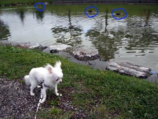 お散歩してると、なんかあたしのあとをついてくるものが・・・